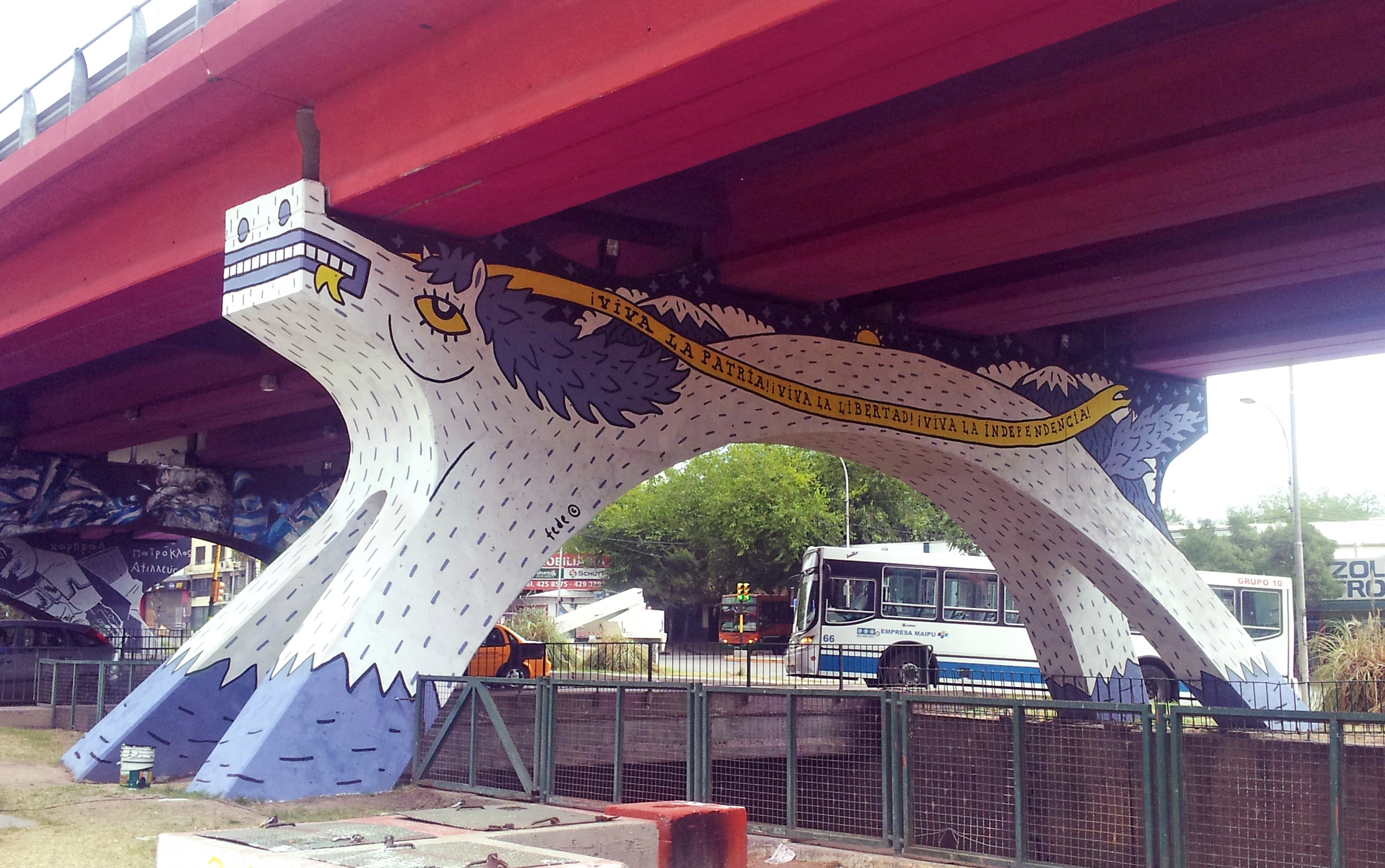 Después pasó el tiempo y no volví a pintar más en una pared hasta que estuve en la facultad. Estudié la carrera de diseño gráfico en la Universidad Nacional de Cuyo, mientras paralelamente me dedicaba al arte, al dibujo y a la pintura. Asistía al taller del maestro Ángel Gil; empecé a pintar cuadros en formatos cada vez más grandes, hasta que decidí saltar directamente a pintar paredes, un poco influenciado por el muralismo mexicano de Rivera y Orozco, y otro poco por la creciente movida de street art que se estaba gestando en el mundo.
